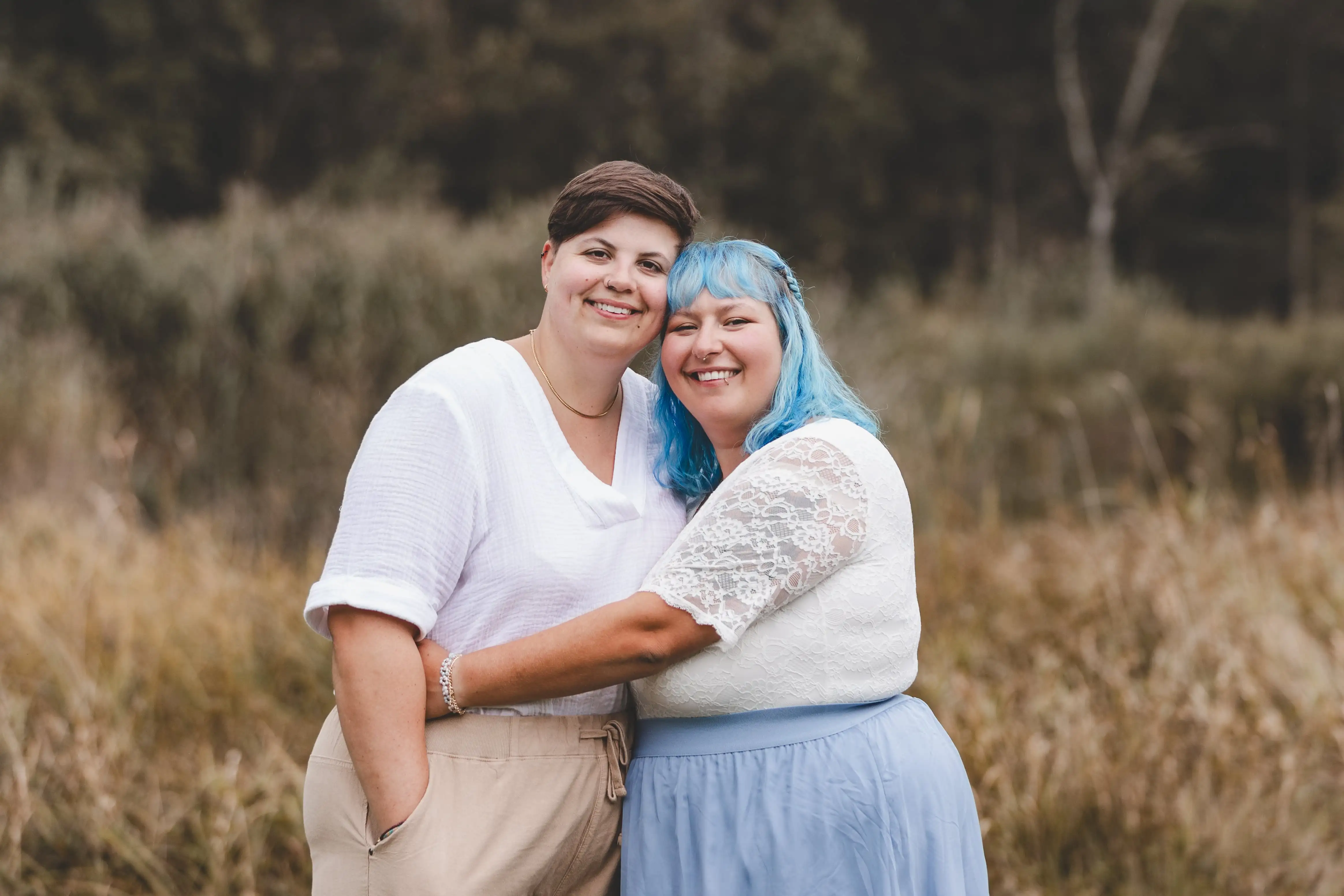 An unserer Hochzeit ist festliche Kleidung in einem Grün- oder Blauton erwünscht.